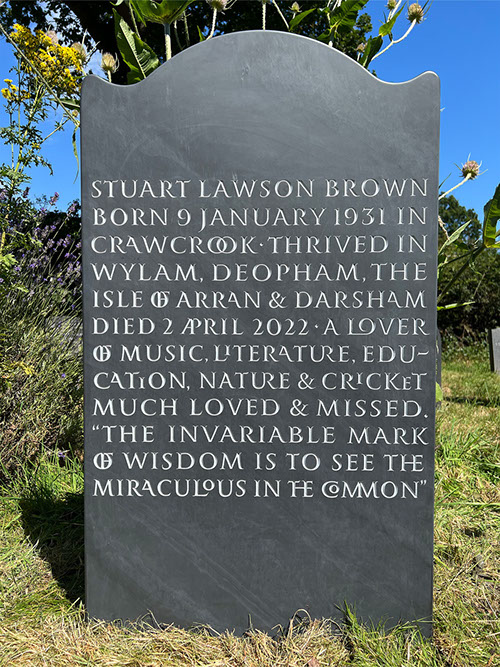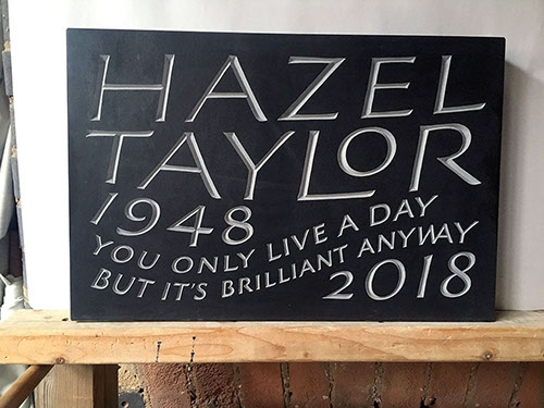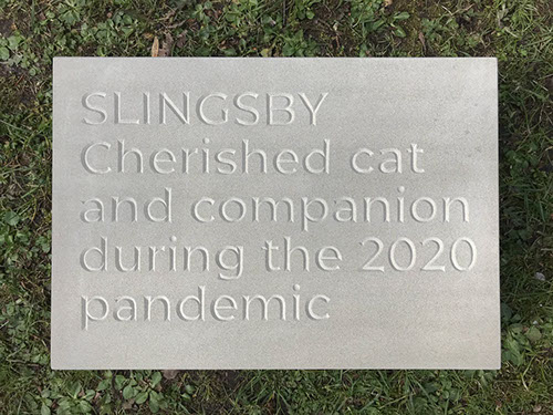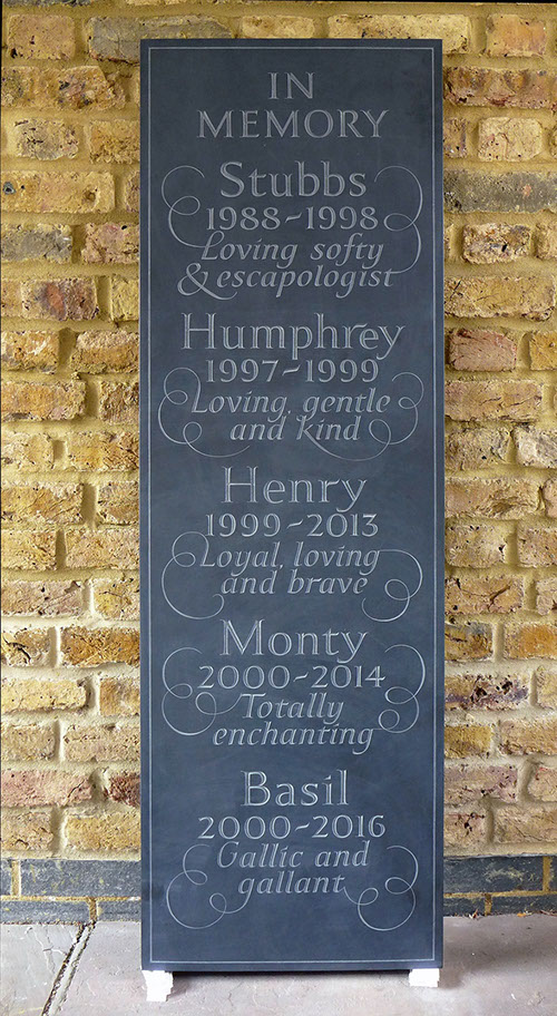 Memorials and cremation tablets are generally a close collaboration between the client and the studio. The whole process normally takes between six months and a year to complete.